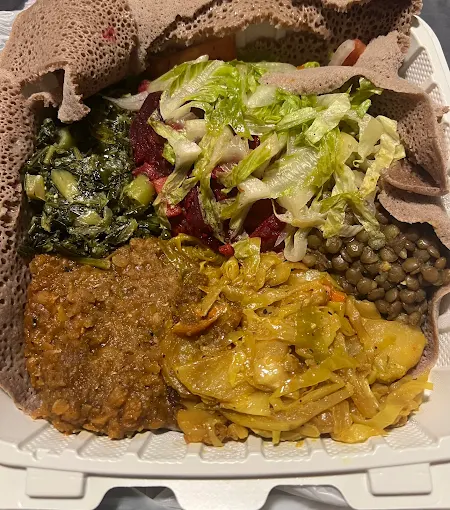 The food was very delicious. I ordered take out. The staff was very friendly, I was greeted buy a kind young man. I ordered both a beef dish and a vegetarian dish. Both were delicious but I very much enjoyed the vegetarian combo platter the most. The cabbage and the potato beet were my favorite veggies. Delicious Ethiopian food!